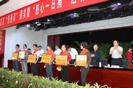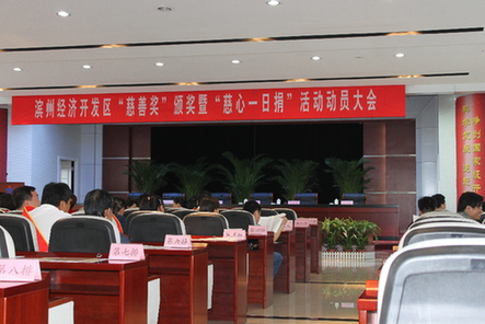 濱州傳媒網(wǎng)訊(記者郭瑩 通訊員李華)2011年5月26日上午,開發(fā)區(qū)隆重舉行2010年度“慈善獎(jiǎng)”頒獎(jiǎng)和2011年度“慈心一日捐”活動(dòng)動(dòng)員大會(huì)。會(huì)議由開發(fā)區(qū)黨工委委員、主任助理、公安分局局長(zhǎng)張愛國同志主持,黨工委書記、管委會(huì)主任姚和民同志到會(huì)并作重要講話,會(huì)議表彰了2010年度為慈善事業(yè)做出突出貢獻(xiàn)的單位和個(gè)人,區(qū)黨工委委員、管委會(huì)副主任、慈善總會(huì)會(huì)長(zhǎng)馬景澤同志接收了7家企業(yè)的捐贈(zèng),其中,福豪鋼材市場(chǎng)管理有限公司認(rèn)捐基金200萬元,海得曲軸有限責(zé)任公司認(rèn)捐基金200萬元,華晨新型建材有限公司認(rèn)捐基金100萬元,中大兆華牧業(yè)科技有限公司認(rèn)捐基金100萬元,金河房地產(chǎn)開發(fā)有限公司認(rèn)捐基金100萬元,